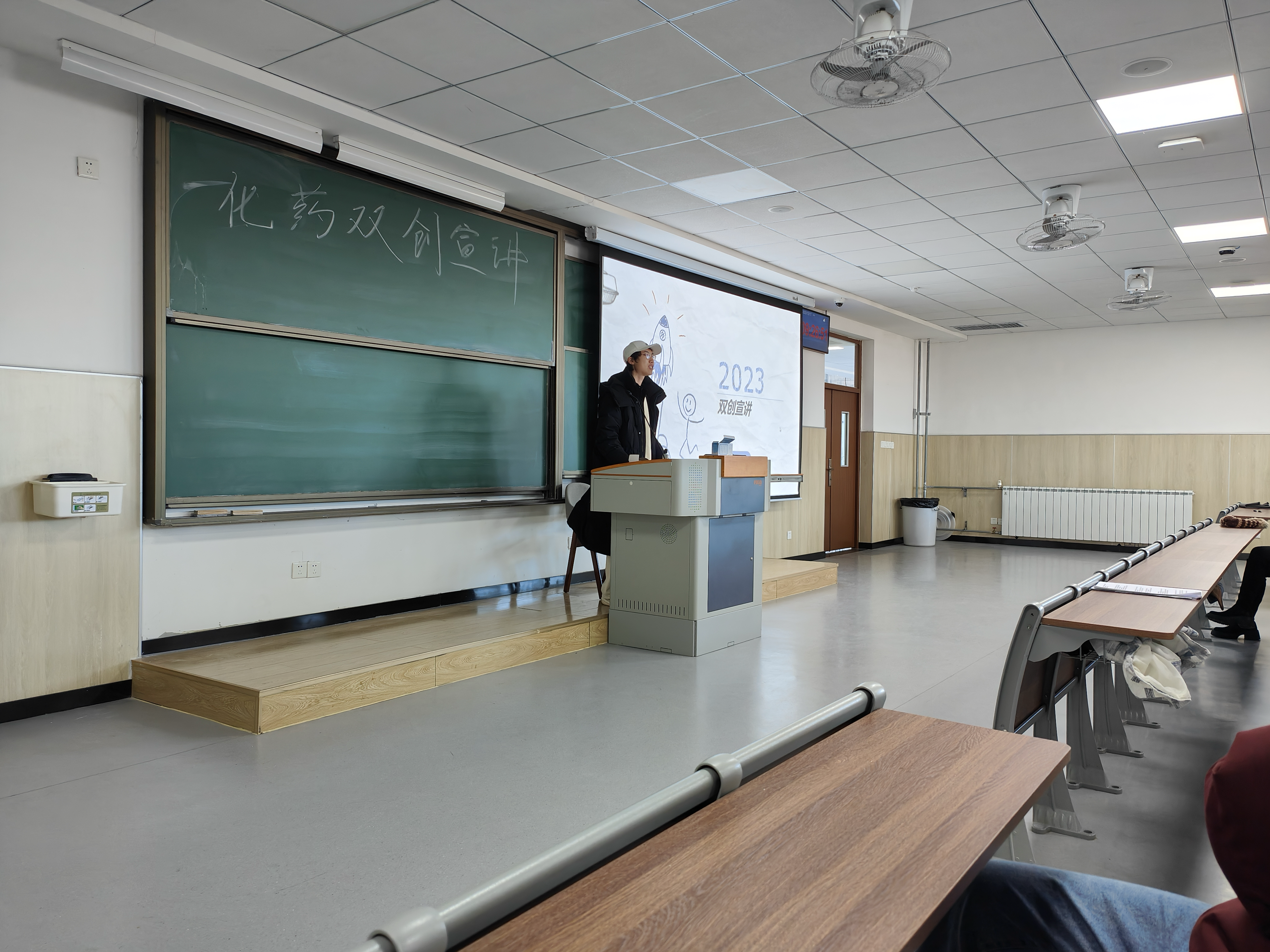 分享会围绕走近实验室、大学生创新创业、校级竞赛及竞赛分类四部分展开。会议伊始,耿泽坤与大一新生分享为什么要进入实验室,他提到导师双向选择制和走进实验室对大学生创新创业尤为重要。随后,围绕什么是大创、为什么申报大创、互联网+、挑战杯大创项目四个方面来讲述大学生如何进行创新创业,为大一新生未来创新创业指明方向。而后,介绍了关于校级竞赛的相关事宜,从化工设计大赛、药学实验技能大赛、新材料设计及创意大赛等校级赛事出发,铺陈了逐级递增的参赛道路,旨在提升大学生双创水平与层次。最后,为大一新生讲述竞赛分类,了解竞赛分类是参赛的重要基础,亦是大学生创新创业的重要前提。