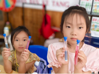 随后开展的紫甘蓝变色实验同样让孩子们兴致盎然。志愿者们将紫甘蓝汁分别与白醋、小苏打溶液混合,原本紫色的汁液在与白醋接触后变成了鲜艳的红色,与小苏打溶液相遇时则转为明亮的蓝色。“为什么会变色呀?”“这是不是魔法?”面对孩子们一连串的提问,支教团成员吴长青耐心解答,让孩子们明白这是物质的酸碱特性在“作祟”,并非神秘的魔法。支教团完成教学后,不仅留下了详细的实验手册和安全指南,更将实验材料包赠送给每个班级,鼓励孩子们回家担任“小小科学传播员”,把神奇的“魔术”带给家人。