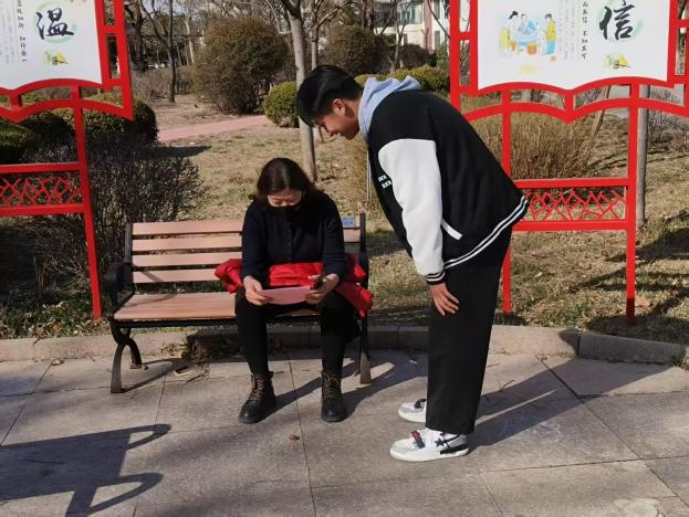 春日的阳光洒满社区活动中心,同学们分组与老人们亲切交谈。有的陪老人唠家常,倾听他们讲述往昔岁月;有的帮老人整理房间,打扫卫生;还有的为老人读报,讲述时事新闻。老人们脸上洋溢着幸福的笑容,活动现场充满了欢声笑语。在老人们的指导下,同学们学习了八段锦,在耐心示范和欢声笑语中大家一起活动了筋骨。
