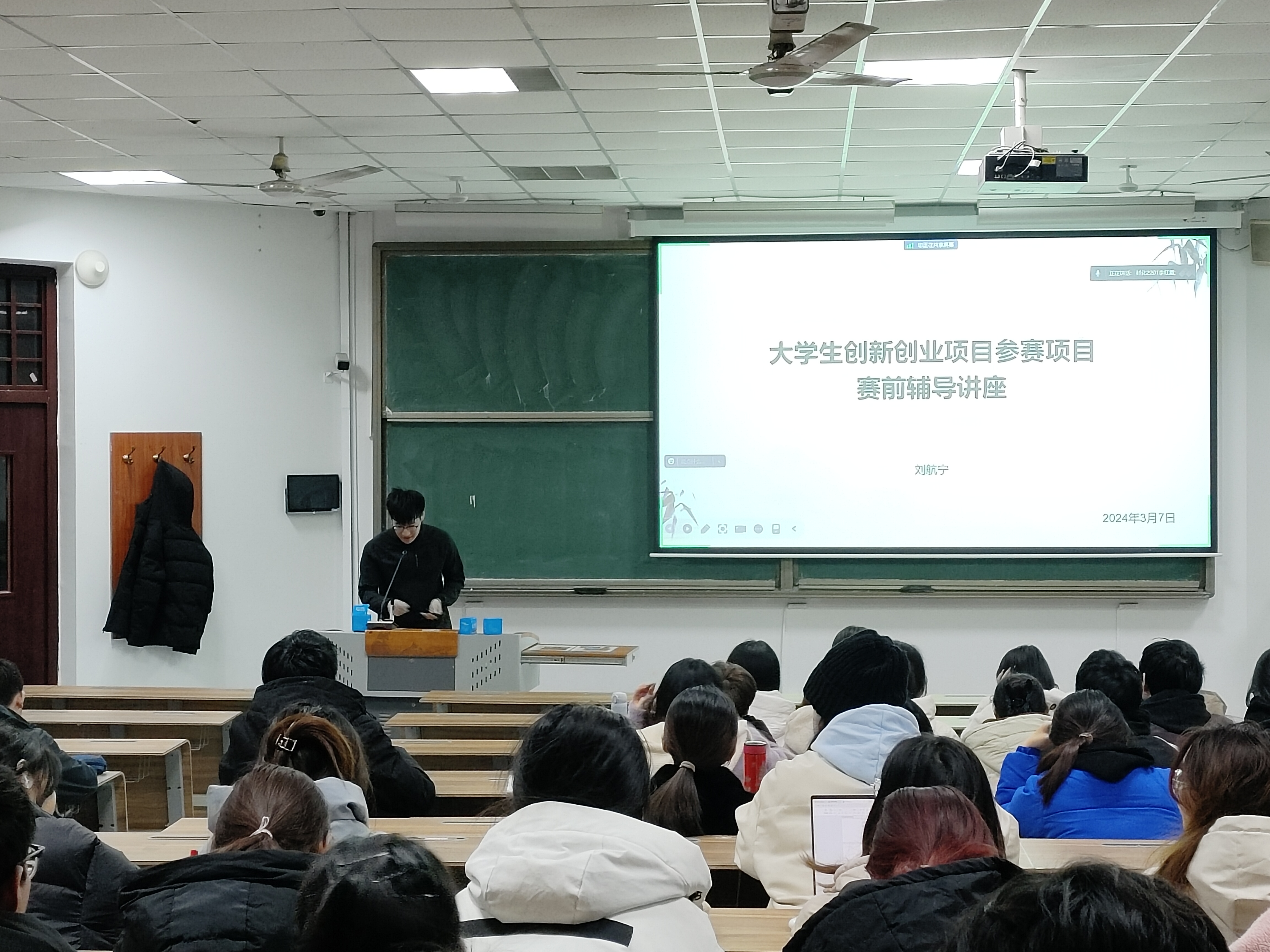 为提升学生对大创的认识,提升创新能力,更好地开展大学生创新创业训练项目以及今后举行的各类竞赛,3月7日太阳成集团tyc122ccvip于教学楼B102开展“大学生创新创业项目参赛项目赛前辅导讲座”,本次讲座由双创优秀代表刘航宁主讲,2022级部分学生参加,2023级学生线上参加。