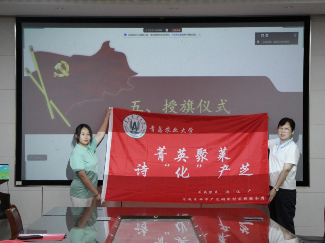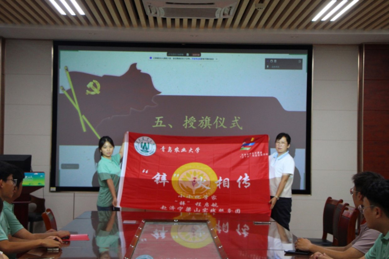会上,实践团成员张凌燕简要介绍了学院暑期“三下乡”的总体情况,从实践筹备流程、突发状况应急处置等关键环节向大家阐释实践安全注意事项。随后,社会实践优秀学生代表王兆源进行发言,他回顾了自己的实践经历,分享实践经验,表示通过参与社会实践,自身的团队沟通、合作能力得到有效提升,同时也深刻意识到作为一名大学生肩负的社会责任。学院团委书记赵莹为实践队伍代表授旗,并向全体实践成员提出以下四点要求:一是融合特色,服务振兴,将涉农高校的办学特色、学院学科特色与社会实践有机结合,充分发挥专业所学,热情服务地方与社会,为打造乡村振兴齐鲁样板、推进农业农村现代化贡献青年力量;二是强化宣传,展现成效,依托校内外宣传平台,聚焦实效与亮点,传递青春实践正能量;三是严守安全,防范风险,各实践队队长要主动担当,全方位做好风险防范,提前谋划安全风险预案,有突发情况及时上报;四是做实后勤,保障有序,提前做好食宿等环节对接,注重食品安全,保障实践工作顺利开展。最后,张凌燕带领全体实践队员进行了动员宣誓。