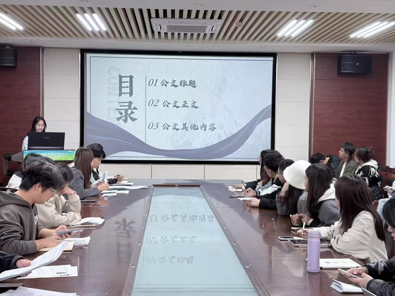 此次培训不仅强化了学生干部的文书处理能力,也为学院学生组织高效、规范的运行奠定了坚实基础。与会人员纷纷表示,通过培训进一步明确了公文写作的规范要求,增强了责任意识与服务意识,今后将以更加专业、严谨的态度投入到学生工作中,为学院发展贡献青春力量。