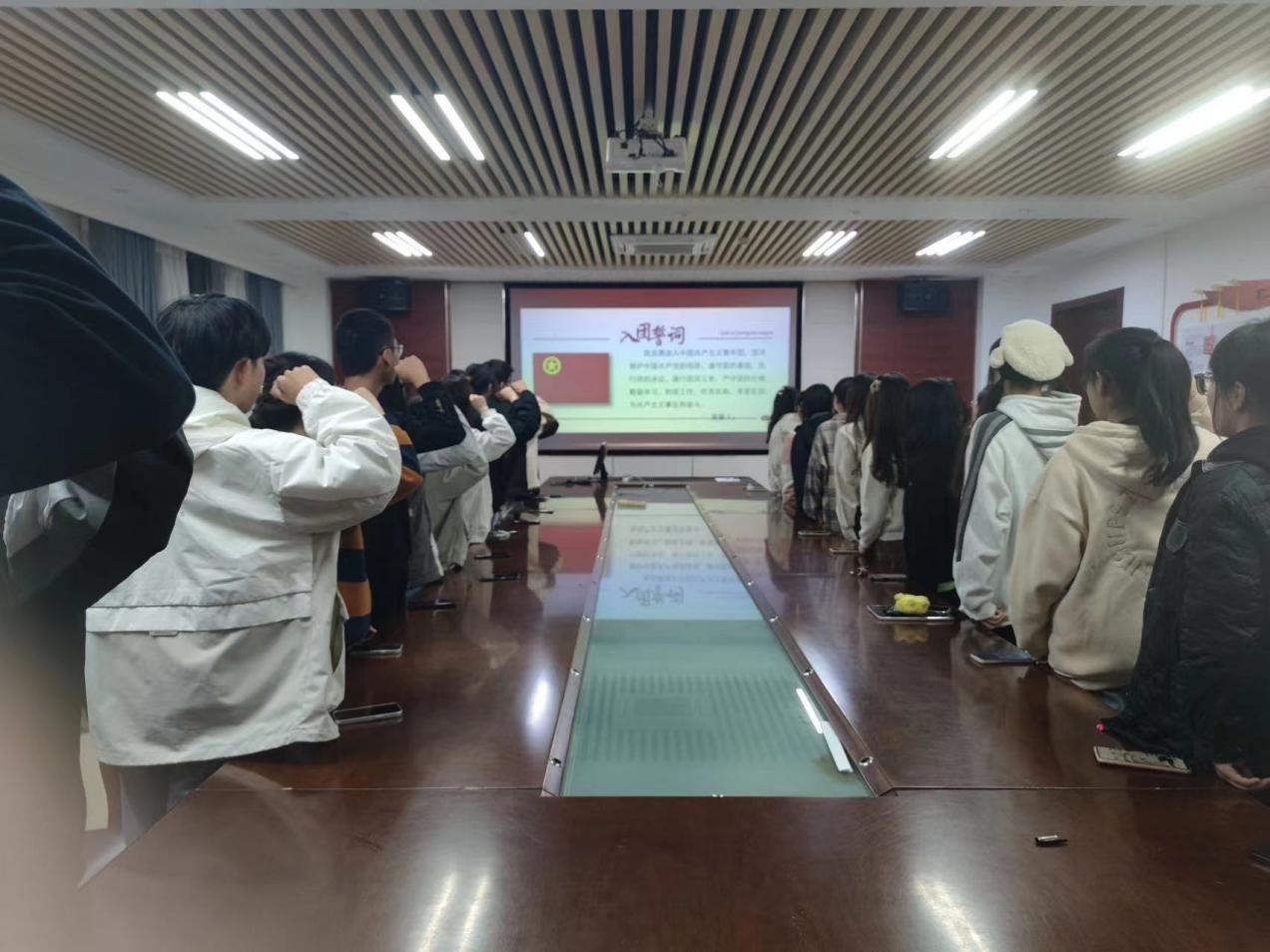 10月27日,太阳成集团tyc122ccvip于化学楼会议室207召开2023年新发展团员入团仪式,会议由团委书记赵莹主持,全体新发展团员参加。