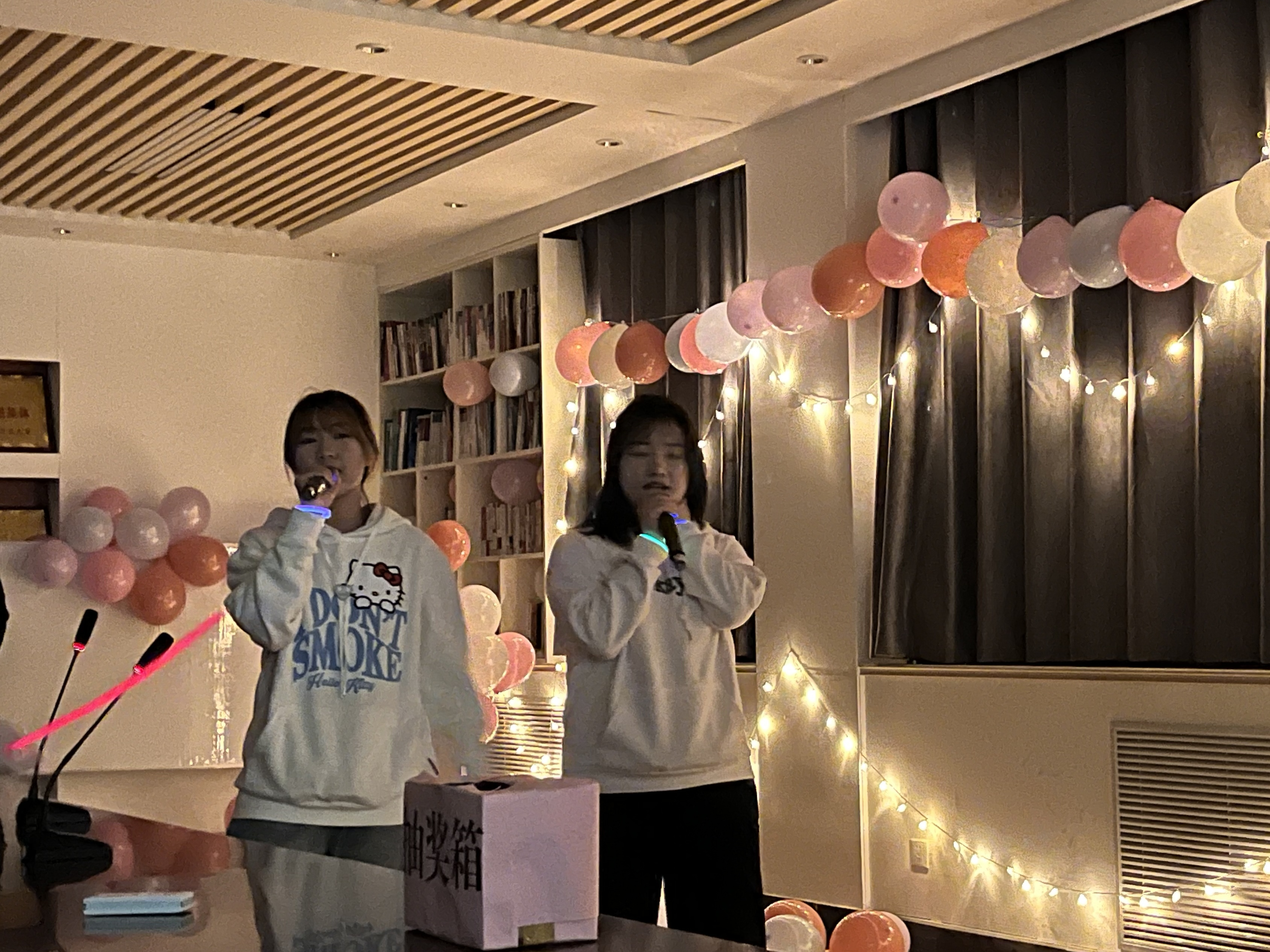 随后,晚会在歌曲《曹操》与《FreeLoop》的青春气息中拉开序幕,研究生们在舞台上尽情表演,活力四射,充分展现了化药学子的蓬勃朝气;舞蹈《相亲相爱》与合唱《奢香夫人》点燃了全场氛围,赢得了师生们的阵阵掌声;合唱《粉红色的回忆》以经典歌曲为题材,与观众形成了良好的互动效果,将全场氛围推向了高潮;舞蹈《灯火里的中国》用优雅流畅的舞姿,为全场观众呈现了一场视觉盛宴;歌曲《巴啦啦小魔仙》以欢快的节奏尽显当代研究生的活力,合唱《Love me like you do》则以温暖动人的音乐,引起了在场观众内心的情感共鸣。此外,晚会还设置了抽奖及游戏互动环节,全体研究生积极参与,赢得了丰厚的奖品鼓励。