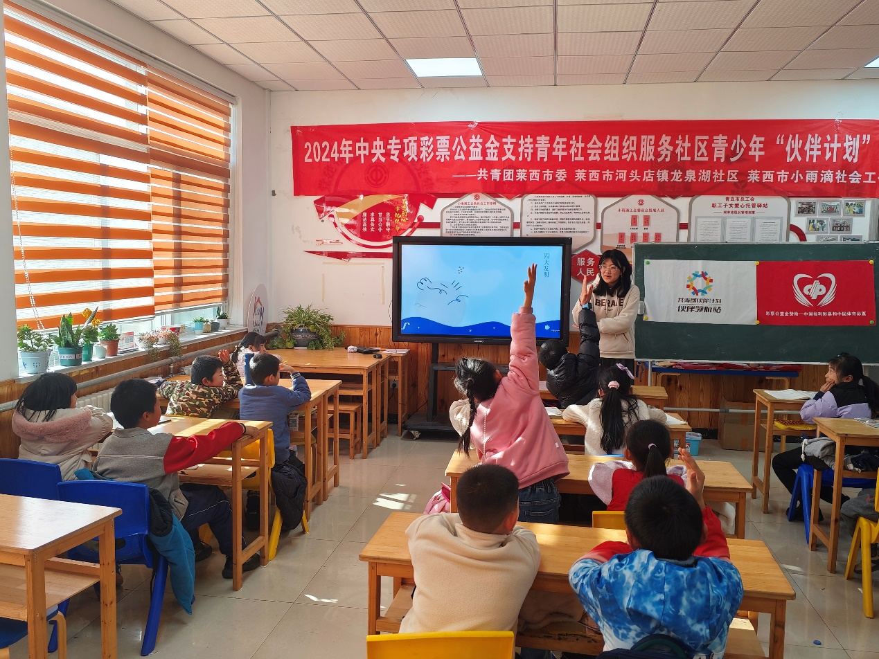 实践团成员为小朋友们带来多彩化学课堂的同时,还对小朋友们进行了红色教育、国学教育以及普法教育。在红色教育环节中,实践团成员通过讲述革命先辈的英勇事迹,让小朋友们懂得革命先辈艰苦奋斗的伟大精神。在普法安全板块,团队成员向小朋友们介绍了校园霸凌、偷窃抢劫、网络诈骗等违法行为,并结合未成年人保护法等相关基础法律知识,帮助孩子们树立法律意识,教导他们学会用法律武器保护自己。在国学教育课堂上,通过精美的图片、有趣的故事,让大家领略到京剧的独特魅力,惊叹于瓷器的精美绝伦,对刺绣的精巧工艺也赞不绝口。此次多元教育活动,不仅拓宽了小朋友们的知识储备,更为他们培养探索精神、爱国情怀、法治意识奠定基础。