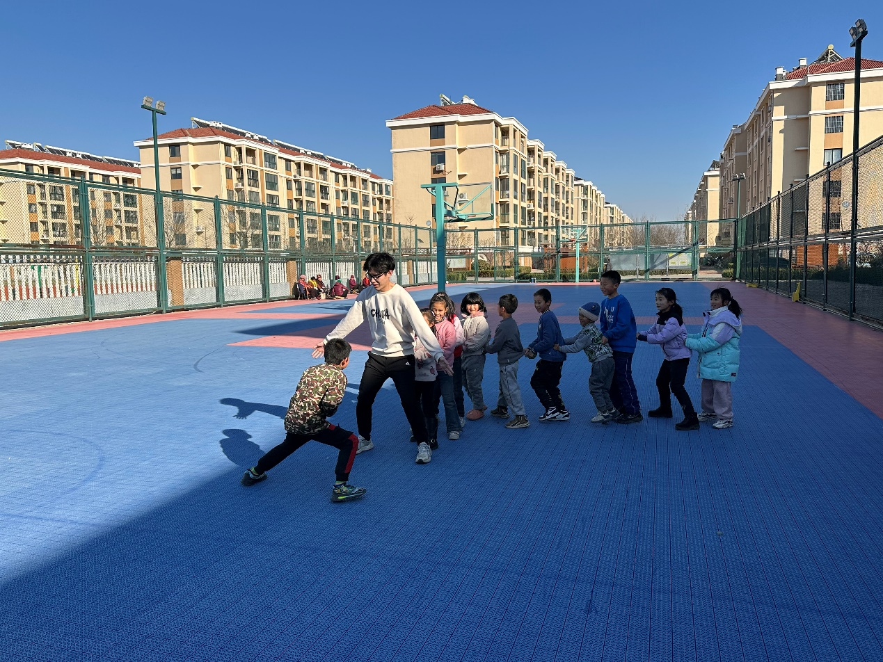 小朋友们在实践队员的带领下,齐聚城市广场,展开了一场别开生面的阳光体育活动。孩子们的欢声笑语在广场上空回荡,成为一道亮丽的风景线。活动伊始,实践队员将孩子们分成几个小组,分别进行足球、篮球、丢沙包和老鹰捉小鸡等游戏,现场气氛热烈。支教老师不仅在场边加油鼓劲,还不时地为孩子们示范正确的动作技巧,确保活动的安全性与趣味性。通过这些体育活动,孩子们在运动中强身健体,增强团队协作能力,在游戏互动中培养了积极向上的精神风貌。