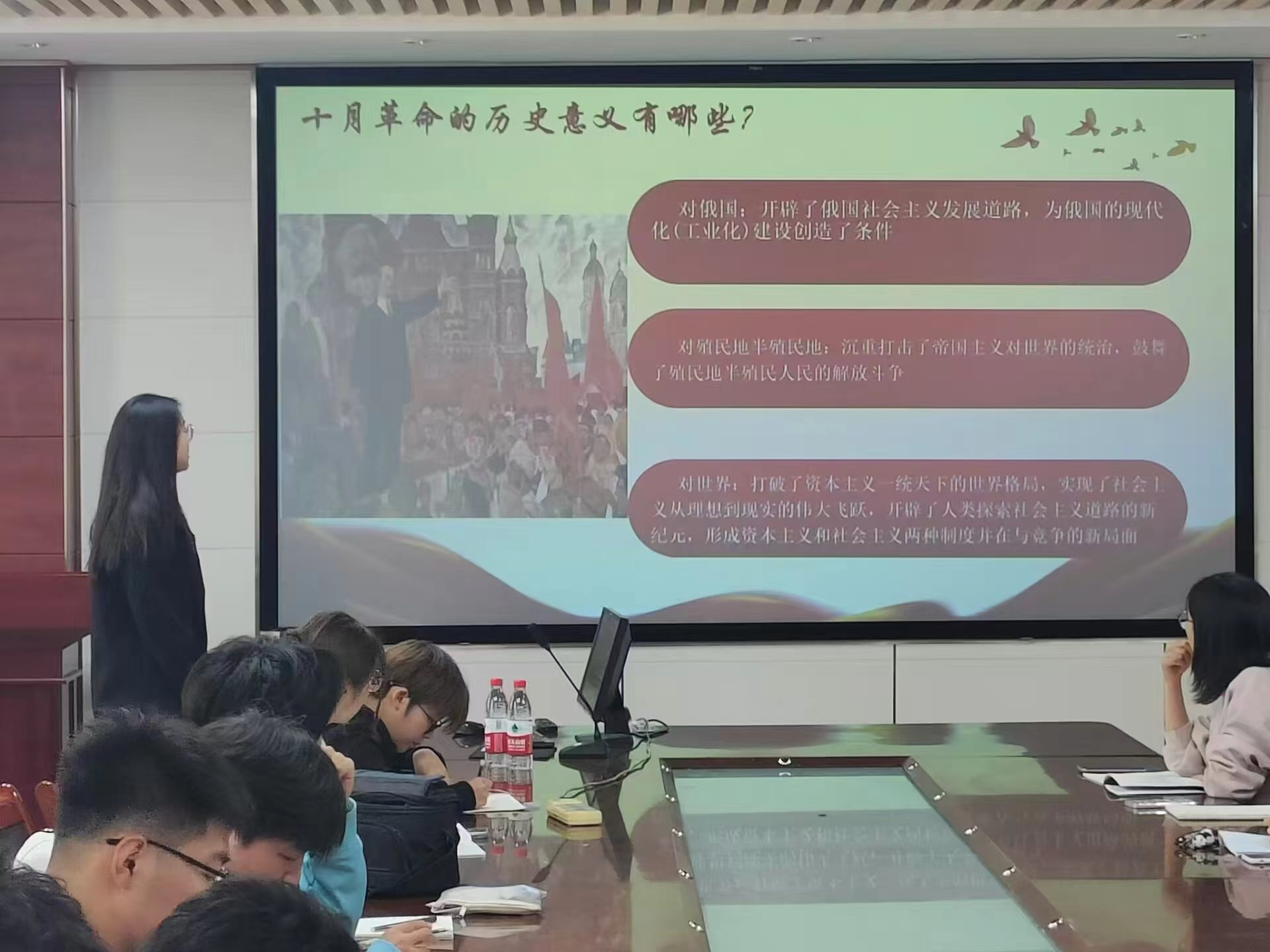 城阳校区培训会议伊始,由李金明同学通过影片引入本次培训会培训会议总结的主要内容为十月革命的胜利与苏联的社会实践 。然后,详细介绍了十月革命的经过、结果,她带领全体学员深入学习了十月革命成功的原因以及十月革命的对俄国、对殖民地半殖民地、对世界产生的重大历史意义 。随后,李金明同学从各方面对比战时共产主义政策与新经济政策,苏联模式的成就与其弊端,向大家阐述苏联建设社会主义的实践 。