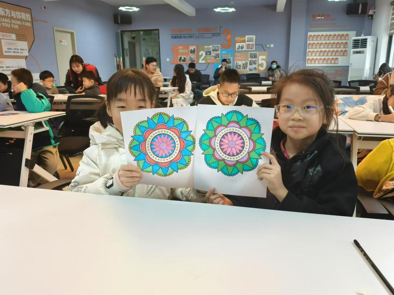 课堂尾声,孩子们迎来了“我心中的曼陀罗花”心理手工拓展课堂。课堂中孩子们充分发挥自己的想象力,用手中的画笔认真填涂出一幅幅风格独特的曼陀罗花作品。实践队员则依据色彩心理学知识,透过孩子们所选用的色彩,敏锐地推测出他们的心情变化、思维方式以及性格特征。这一新颖的互动方式,不仅让孩子们以轻松愉悦的方式尽情挥洒想象力,还引导孩子们对色彩心理理论产生了浓厚的学习兴趣。