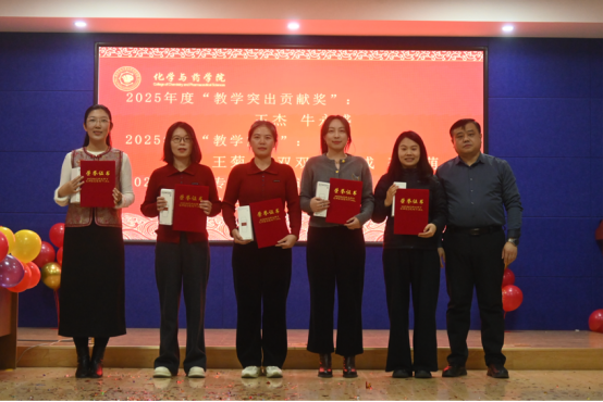 表彰仪式在联欢进程中有序举行。学院党委书记由源清为荣获“山东省优秀研究生导师”及2025年度“育人标兵”称号的教师颁发了荣誉证书。院长龚良玉向2025年度“科研突出贡献奖”与“科研标兵”获奖者授予奖项,表彰他们在科研工作中的卓越表现。副院长徐鲁斌为获得2025年度“教学突出贡献奖”、“教学能手”以及“专业认证先进个人”的教师颁奖,肯定他们在教育教学和专业建设中的辛勤付出与突出贡献。
