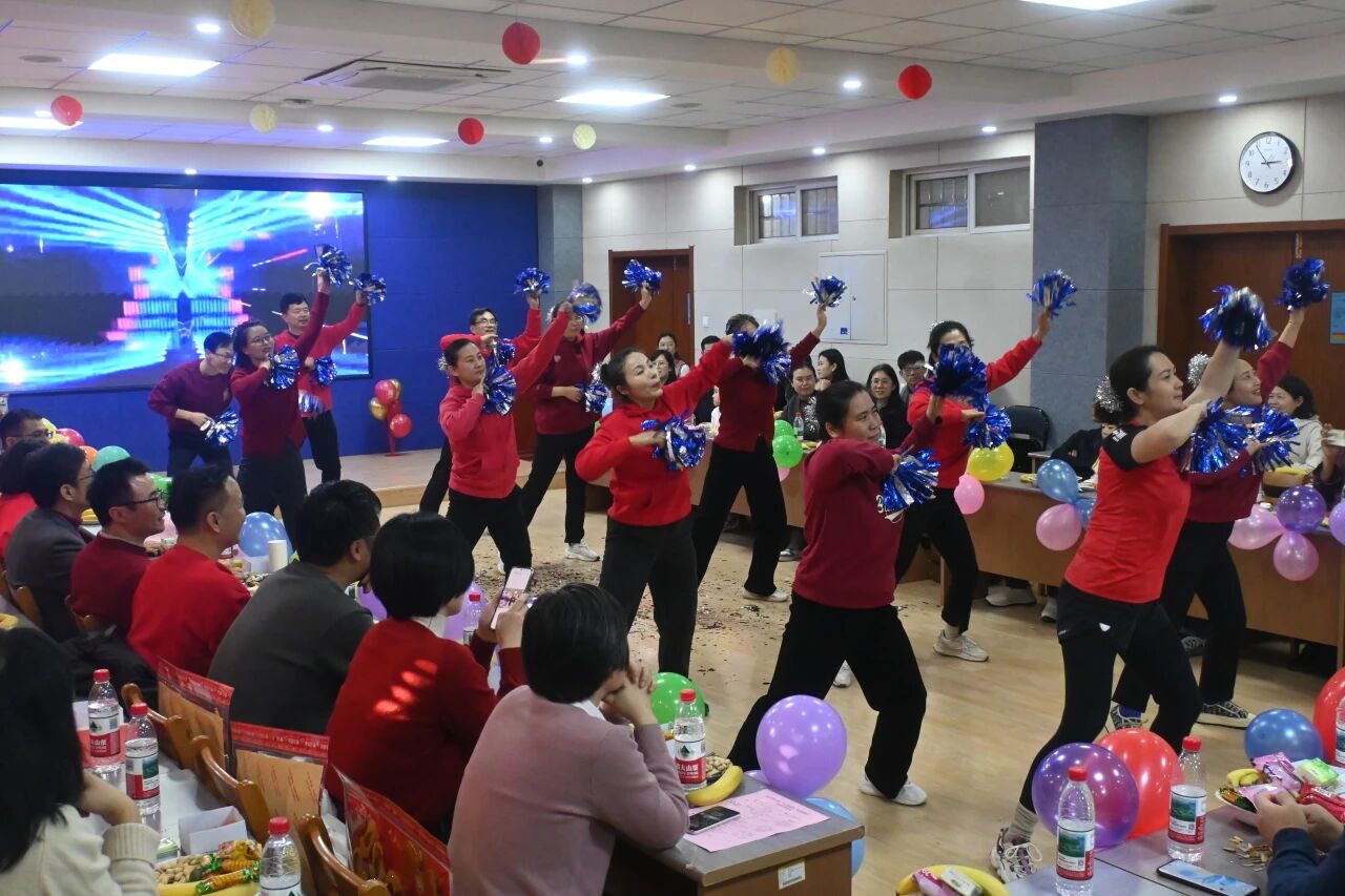 文艺表演与互动环节精彩纷呈,气氛活跃。趣味健身操《“化”动力,“药”未来》以充满活力的动作生动展现出教职工的蓬勃朝气;歌曲《“材”神到》节奏欢快、寓意吉祥,传递出对新年的美好憧憬;师生合唱《我相信》抒发了奋发向前、共筑未来的坚定信念;由辅导员老师们带来的趣味舞蹈《第八套广播体操》幽默新颖,引来阵阵欢笑与掌声;琵琶独奏《彝族舞曲》旋律悠扬婉转,引人入胜;歌舞《相亲相爱》舞步欢快、配合默契;朗诵《她的路,我们的光》以深情的表达,歌颂伟大祖国的发展历程与光明前景,展现出深沉的家国情怀与时代精神。穿插于节目之间的趣味游戏、幸运抽奖等互动环节,吸引教职工们踊跃参与,现场掌声、笑声与喝彩声不断。