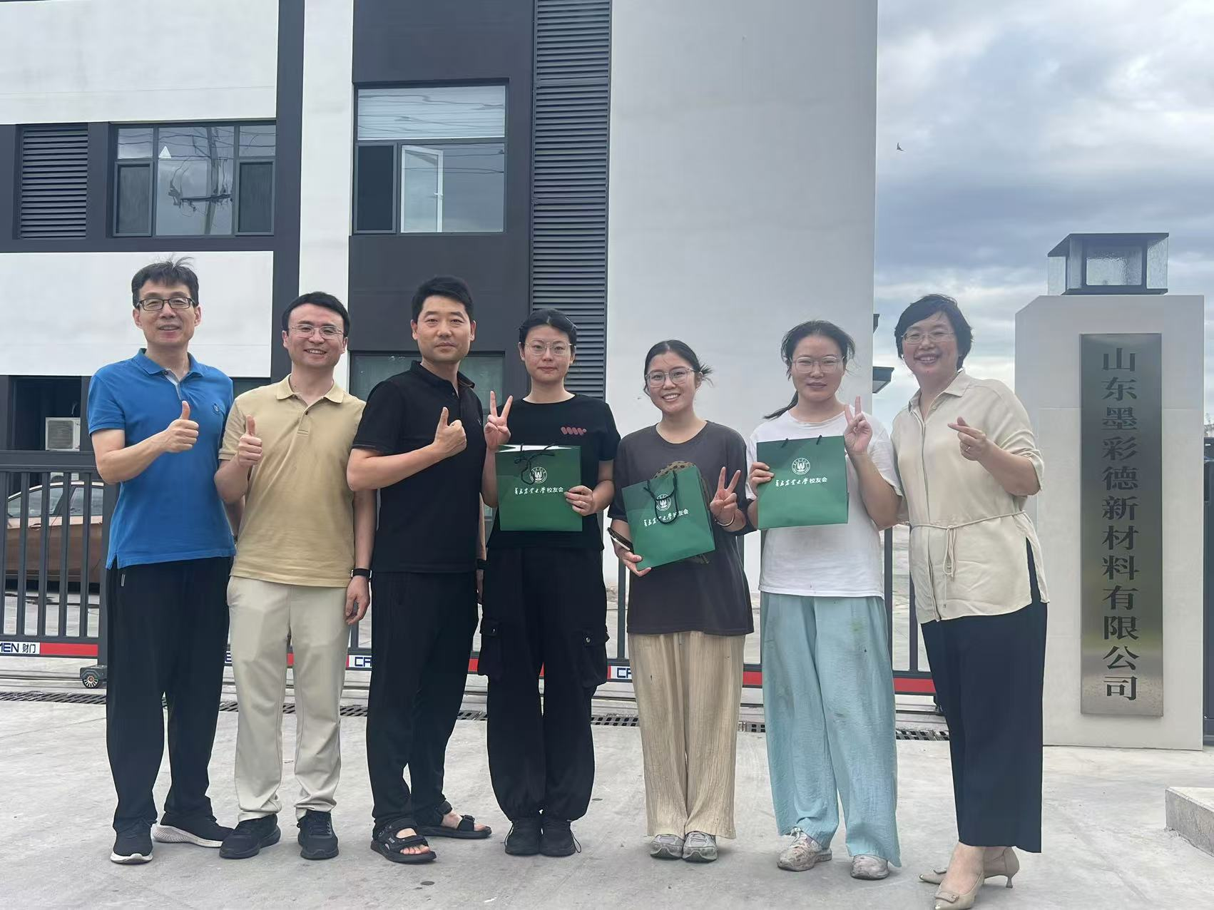山东墨彩德新材料有限公司副总经理王锐等热情接待并陪同考察。学院团队参观了公司研发实验室、中试车间及生产车间,全面了解了公司从研发、中试到规模化生产、市场销售的全链条运营体系,对企业技术创新与产业化能力留下了深刻印象。参观结束后,双方进一步开展了座谈交流。王锐详细介绍了公司发展概况、核心业务及技术升级、人才储备等方面的机遇与挑战,强调对关键技术突破、专业人才引进及校企联合研发的迫切需求,表达了深化校企合作的强烈意愿。