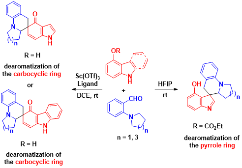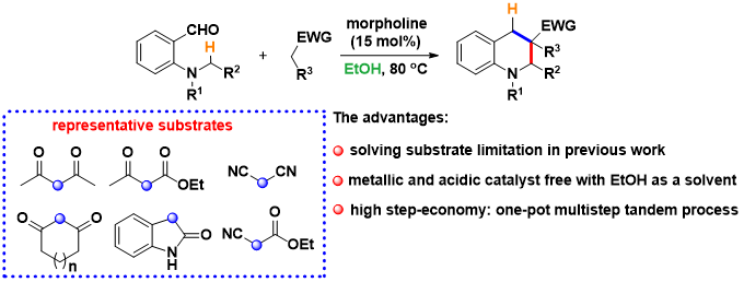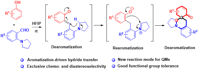 基于过渡金属及有机小分子催化的串联去芳香化反应;研究绿色、温和条件下多步串联反应构建具有生物活性的有机分子,药物及其中间体。