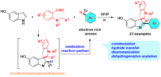 37. Chunyan Ge, Liang Wang, Fangzhi Hu, Zhanshuai Ding, Xinyao Li, Deshuai Xiao, Jiayi Wang, Shuai-Shuai Li*, HFIP-mediated imidization of electron-rich arenes with in situ formed spiroindolenines as new imidization reagents for facile construction of 2-arylspiroindolenines, Org. Chem. Front. 2022, 9, 1696-1702. (IF = 5.456, 中科院top一区)