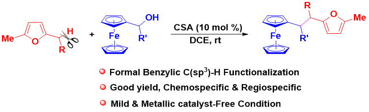 19. Didi Ren, Lubin Xu, Liang Wang*, Shuai-Shuai Li*, Catalytic Formal Benzylic C−H Bond Functionalization of 2,5-Dialkylfuran Derivatives with Ferrocenyl Alcohols as Alkylation Reagents, Org. Lett. 2019, 21, 627–631. (IF = 6.005, 中科院top一区)