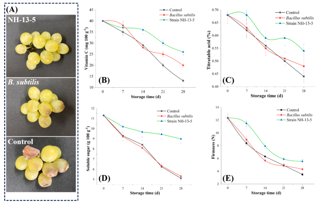 57. Lin Xiao, Jin-Tian Wang, Dong-Fang Cao, Hong Li, Hong-Yu Fang, Tian-Li Qu, Bao-Hua Zhang, Shuai-Shuai Li*, Feng-Yu Du*, Biocontrol potential and antifungal mechanism of a novel Bacillus velezensis NH-13–5 against Botrytis cinerea causing postharvest gray mold in table grapes, Postharvest Biology and Technology, 2025, 229, 113710. (中科院一区)