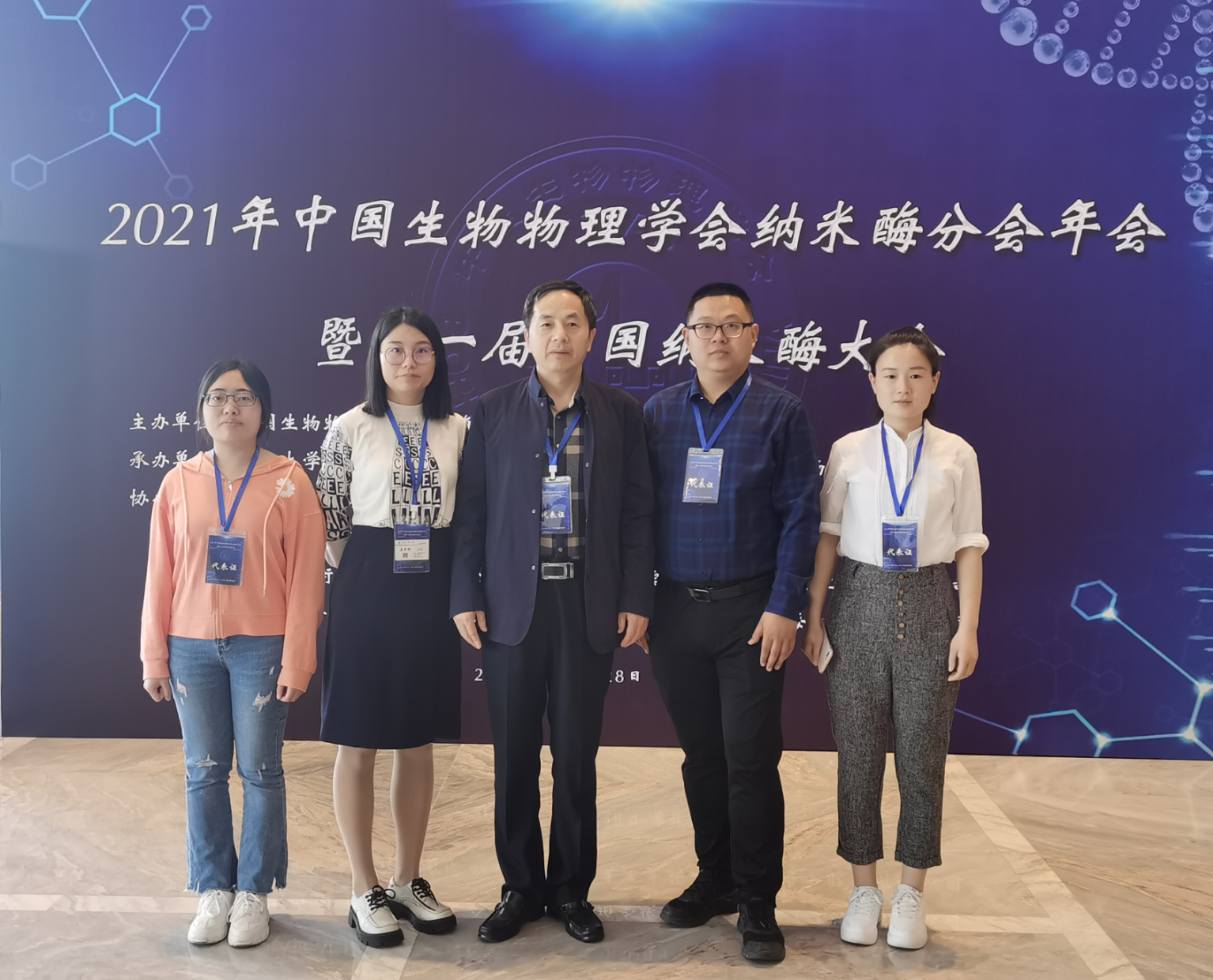 由中国生物物理学会纳米酶分会主办,吉林大学、中国科学院长春应用化学研究所、吉林省生物物理学会共同承办的2021年中国生物物理学会纳米酶分会年会暨第一届中国纳米酶大会于2021年5月25-28日在吉林省长春市举行。课题组李峰教授、盖盼盼教授、朱党强教授、齐洪杰同学与蒲黎同学参加会议交流学习。