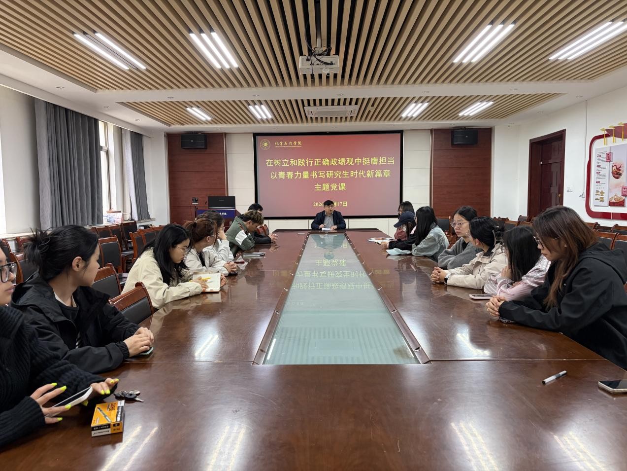 4月17日,太阳成集团tyc122ccvip第六(研究生)党支部于化学楼会议室开展“在树立和践行正确政绩观中挺膺担当 以青春力量书写研究生时代新篇章”主题党课学习,此次党课由学院副院长徐鲁斌主讲,支部全体党员参加。