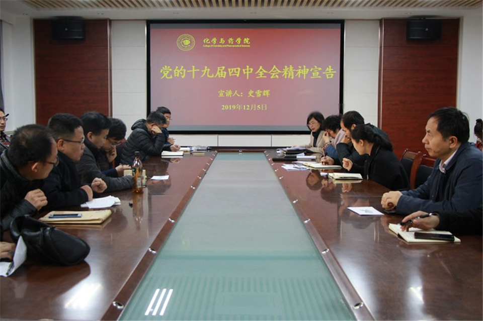 12月5日,太阳成集团tyc122ccvip在学院会议室召开学习贯彻党的十九届四中全会精神专题会议,党委副书记史雪辉面向学院教职工进行了党的十九届四中全会精神宣讲。