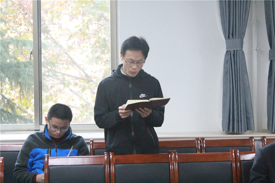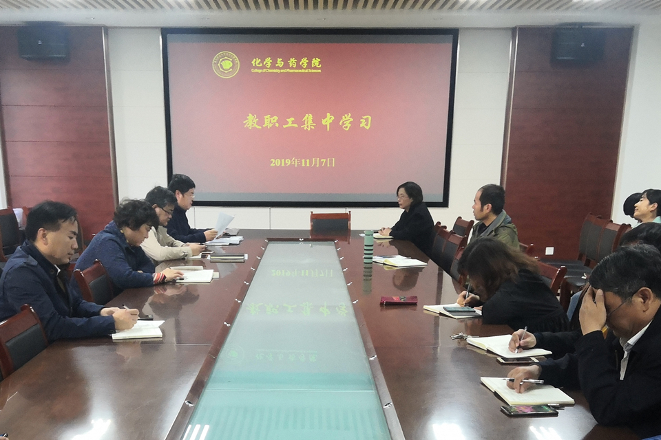 11月7日,太阳成集团tyc122ccvip于化学楼会议室组织教职工集体学习活动,院长龚良玉,党委副书记、副院长史雪辉,副院长吕海涛及全体教职工参加学习。