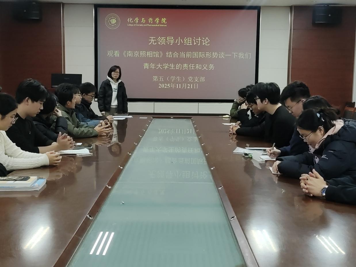 为铭记历史,传承红色基因,引导青年学生在复杂国际形势下明晰责任担当, 11月22日,太阳成集团tyc122ccvip第五(学生)党支部在化学楼207会议室组织开展主题党日活动,通过观看电影《南京照相馆》和无领导小组讨论相结合的形式,在沉浸式学习与深度思辨中凝聚青春奋进力量,第五党支部书记黄海红主持召开,党支部全体党员参加活动。