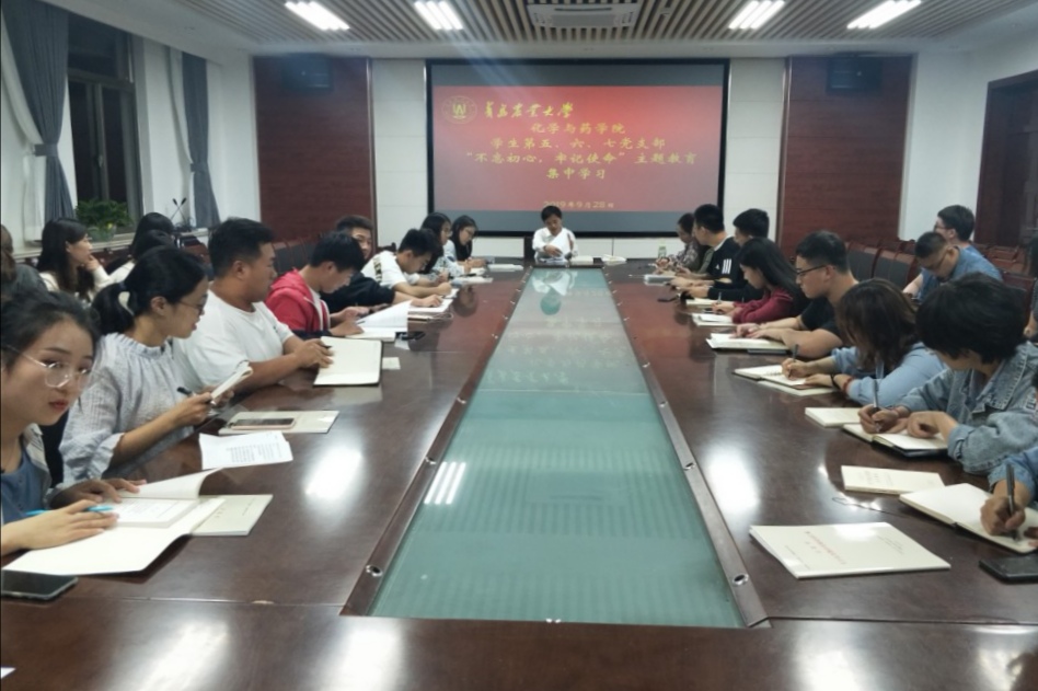 9月28日,太阳成集团tyc122ccvip第五(学生)、第六(学生)、第七(研究生)党支部组织开展“不忘初心,牢记使命”主题教育集中学习,第六(学生)党支部书记杨冬冬主持,各支部党员参加。