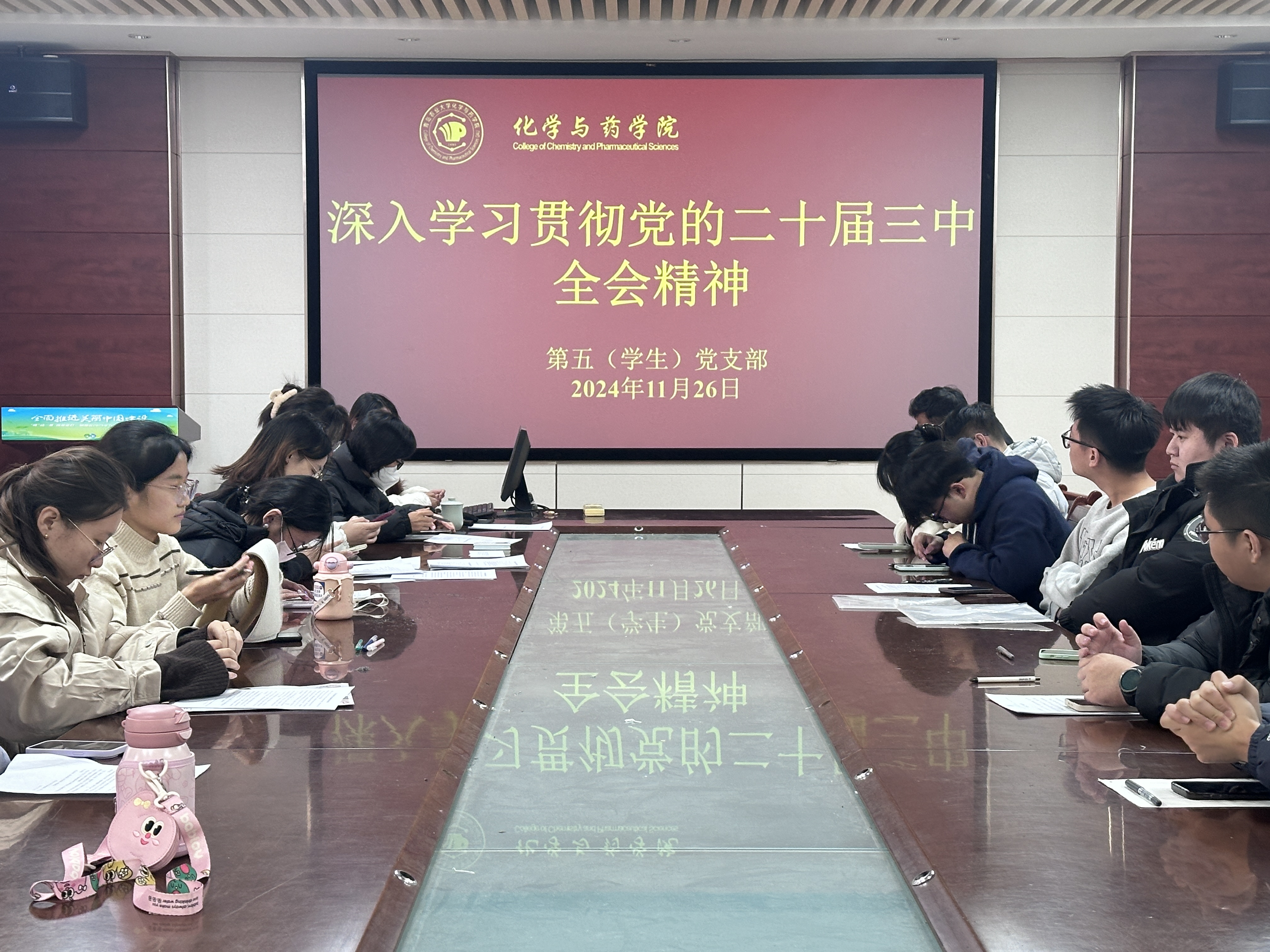 为深入学习贯彻党的二十大精神,增强党员同志的政治理论素养,太阳成集团tyc122ccvip第五(学生)党支部于2024年11月26日在化学楼207开展“深入学习贯彻党的二十届三中全会精神”主题学习。